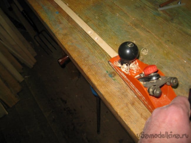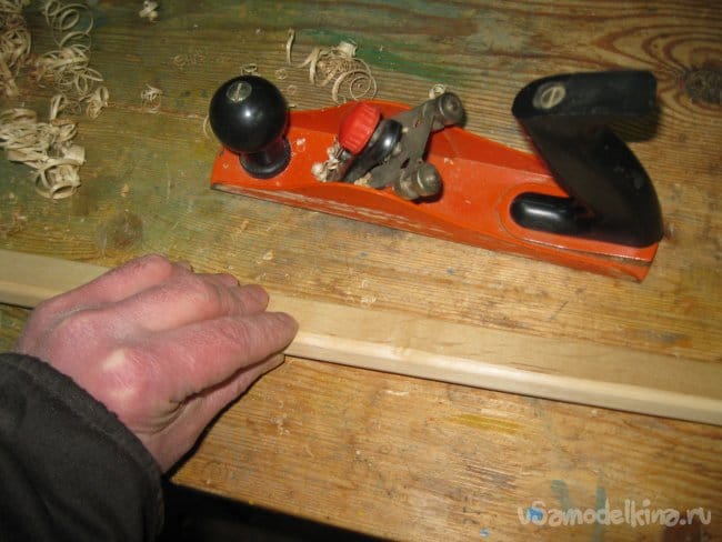 При помощи ручного рубанка, скругляем ребра нашей заготовки, чтобы рукоятку, которой будет служить одна из будущих планок, было удобно держать в руке.