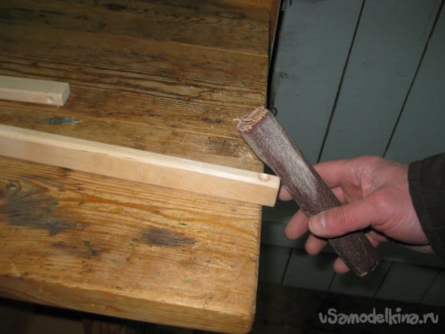 При помощи наждачной бумаги, тщательно обрабатываем полученные планки, особенно их острые кромки.
