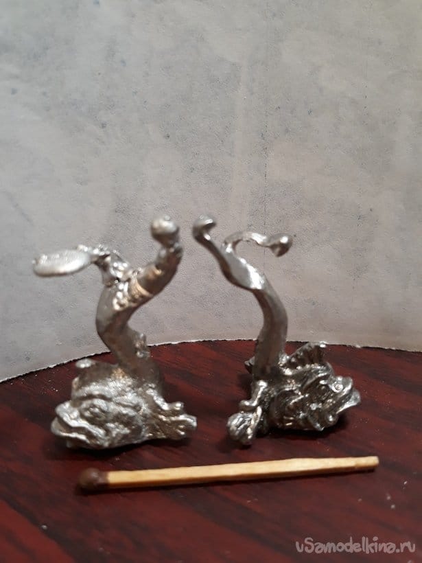 Многие детали были сделаны вновь и в основном методом литья из сплава Розе. Были сделаны сначала модели деталей, потом формы для отливки и наконец сделаны отливки. А, затем обработаны. Покажу это на примеры Чудо-юдо-рыб.