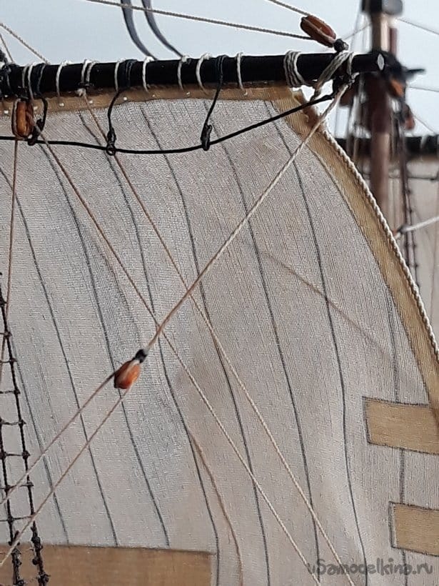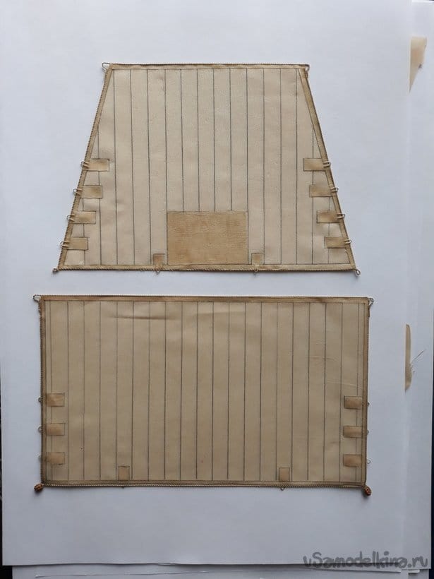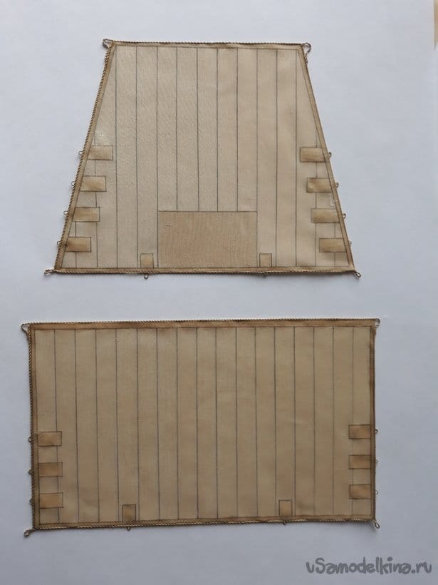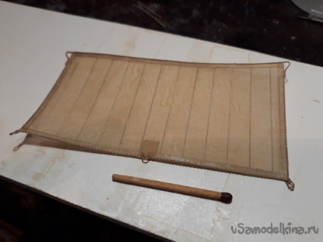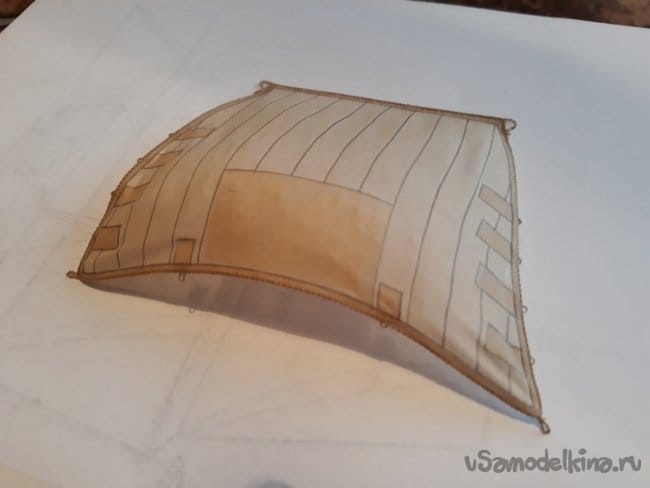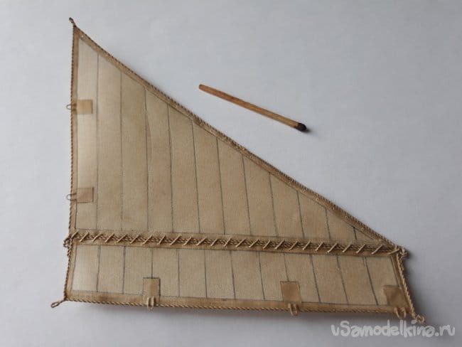 Так выглядит готовый парус. Осталось привязать его к рею.