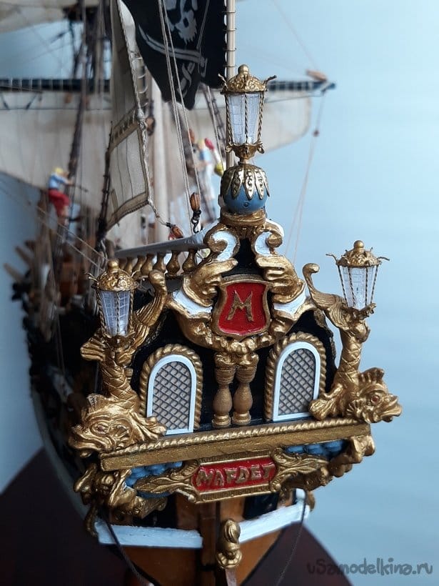 Был доработан гальюн со штульцами, добавлена рустерная решетка основания гальюна.