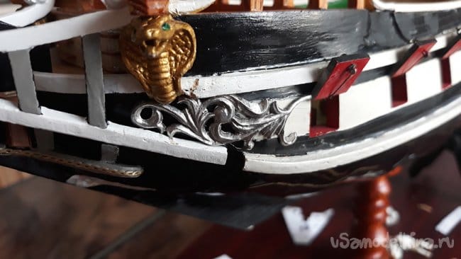 - дополнил носовую часть украшением и добавил оформление на кат-балки в виде змеиных голов.