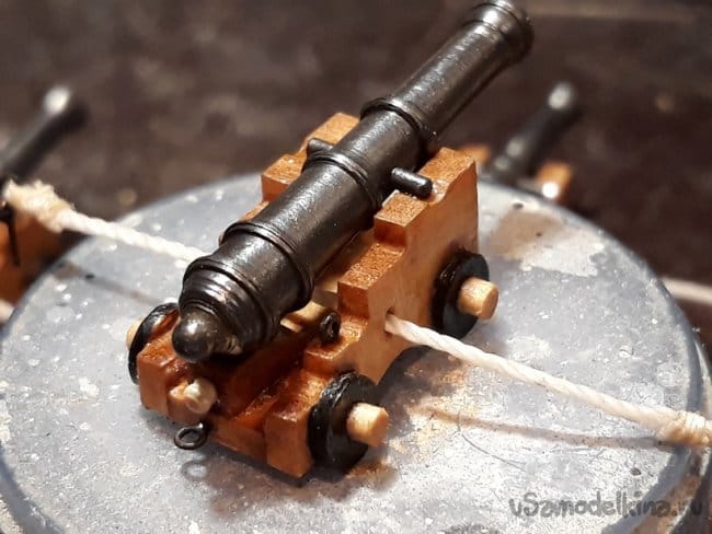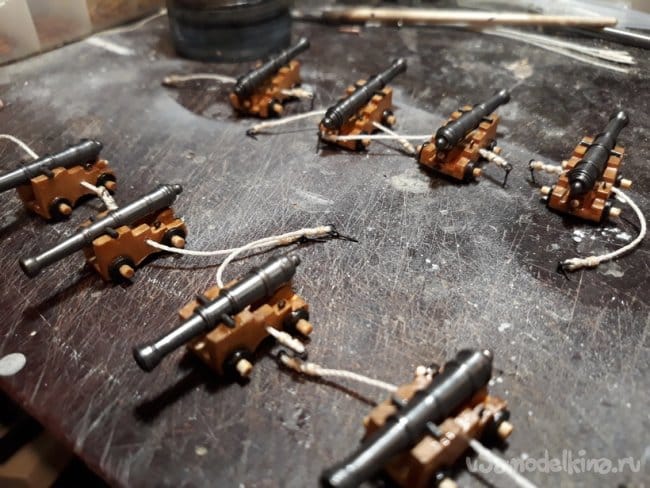 Орудия были демонтированы с модели. Лафеты претерпели модернизацию. Сами орудия были зачернены химическим способом для придания им натурального вида.