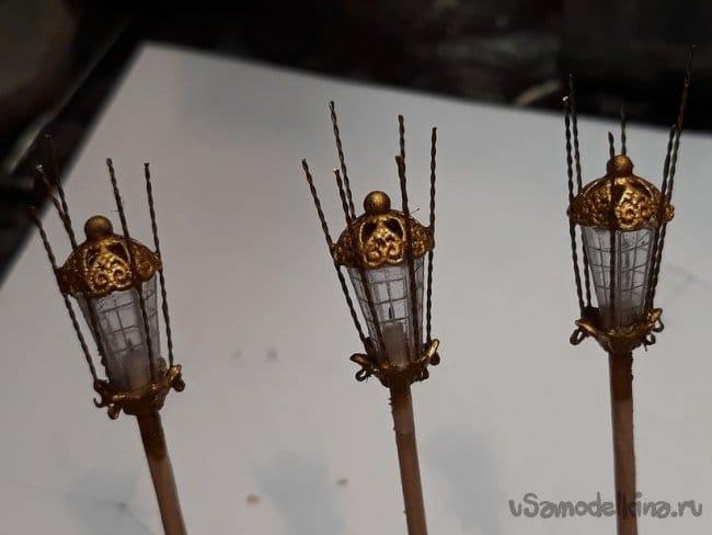 Ну, а затем вязка вант. Хочу отметить, что на модели все узлы обвязки выполнены натуральным образом.