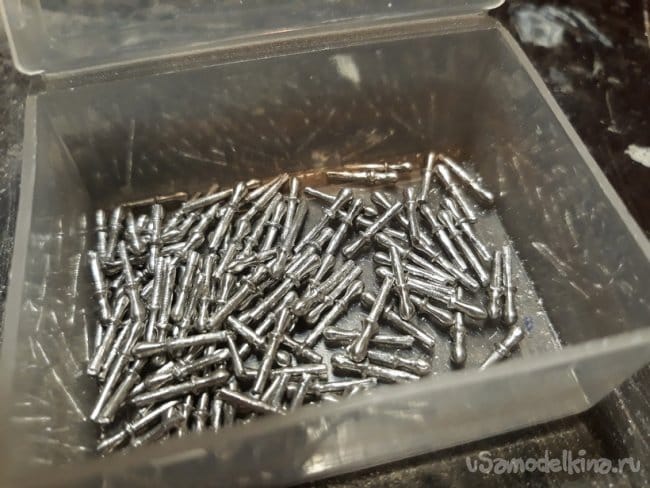 Такая мелочевка как нагели была отлита из сплава Розе и зачернена.