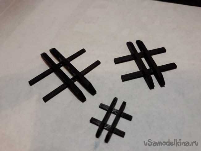 Модель предполагалось сделать стендовой. Масштаб 1:76. Наборный корпус, из фанеры выпилил и собрал быстро. Но, что дальше? Обшивать рейками, вроде долго и нудно, да и напилить то их не на чем. Тут руководитель кружка, Валентин Георгиевич, предложил сделать из эпоксидной смолы с добавлением пластификатора. Новаторская идея заключалась в том, что на оргстекле делается разлиновка под доски с имитацией гвоздей. Затем это все обрамляется бортиком. Получается своеобразная ванночка. Она смазывается тонким слоем масла и заливается эпоксидная смола с пластификатором, подкрашенная в нужный цвет. В данном случае я сделал черный. Смола постепенно схватывается, пластификатор дает замедление этого процесса и делает ее эластичной на какой-то период. В зависимости от количества пластификатора время становления смолы получается разное. То есть время снять смолу в виде гибкого листа, типа материи, и работать с ним.