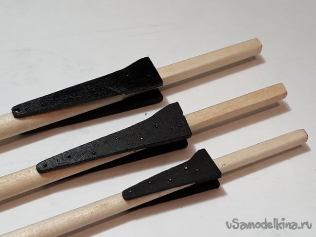 Для изготовления мачт, марсов так же были использованы линейки и ручки от кисточек.