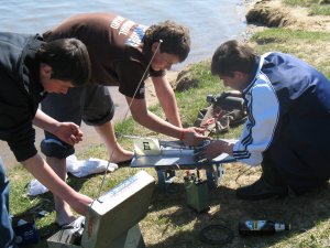 А, это фото «надувательского» приспособления с уже «надутым» парусом. «Надутость» выполняется на готовом парусе смоченного чистой водой и нагруженным грузом песка в мешочке.