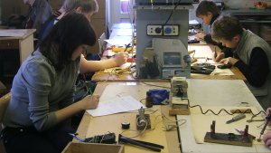Учеба на рабфаке, затем институт, отнимали много времени. Поездки в кружок стали редкими, но потихоньку сделал корпус. Затем кружок перебрался еще дальше, от моего дома, на другой конец города. Поездки стали еще реже. Тогда я забрал модель домой, продолжил постройку дома в свободное время. Сделал лафеты к пушкам. Пушки предполагал сделать литыми из олова. Но, результат меня не порадовал. Пришлось отказаться от него. Приглянулся цинк, собирал я его как лепешечки цинка, остатки после лабораторных работ Отлитые пушки мне опять, не очень понравились. Вопрос встал как выточить и где?