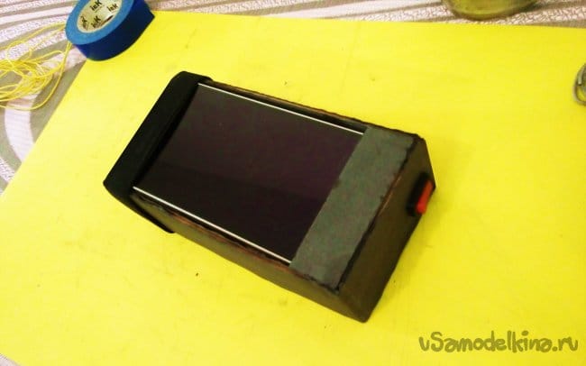 С наружней стороны щель прикрывается крышкой (приклеивается) из картона размером 2см х 7,5см.