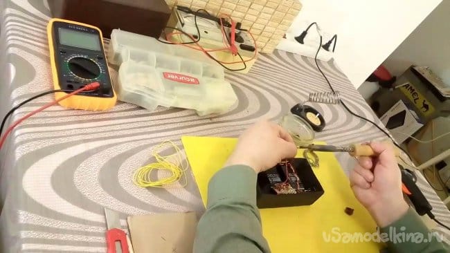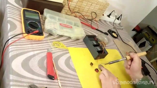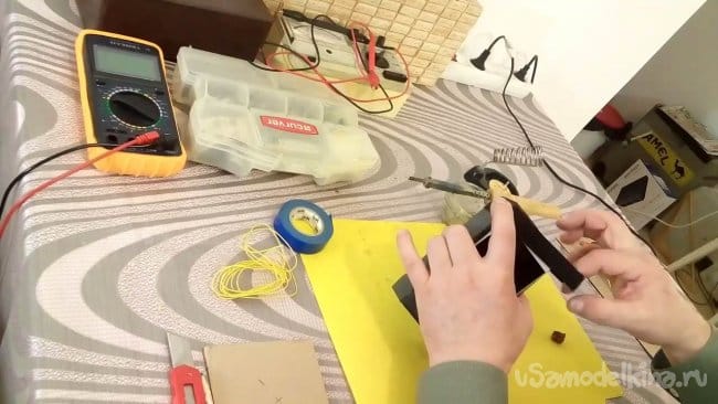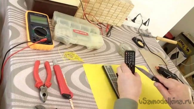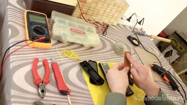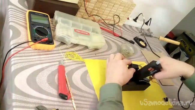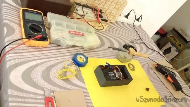 Инструменты для работы: Карандаш, линейка, нож, кусачки, плоскогубцы, паяльник, термопистолет, кисточка и тестер (если есть).
