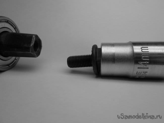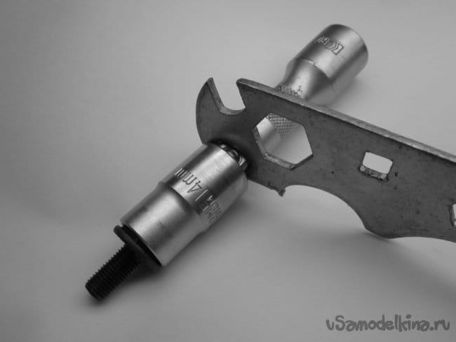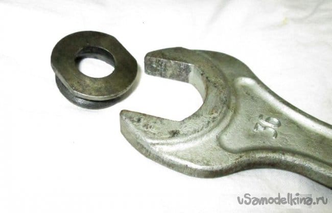16,1 - 16, 05 = 0,05 мм. Следовательно, подшипники предстоит запрессовывать на ось. Я один подшипник запрессовал заранее, второй пришлось запрессовывать с помощью резьбы. Использовал модернизированный (подточил) «семейный» ключ.