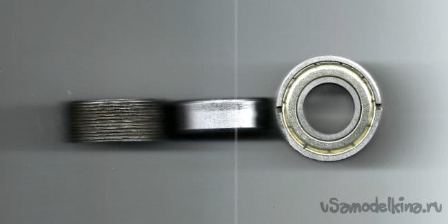 Диаметр нашего подшипника равен 35,1 мм. Ширина подшипников из набора равна 10,75 мм. Диаметр внутреннего отверстия равен 15, 05 мм.