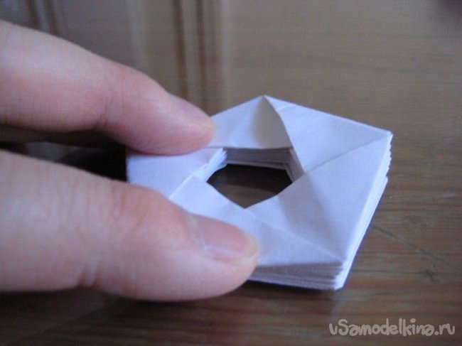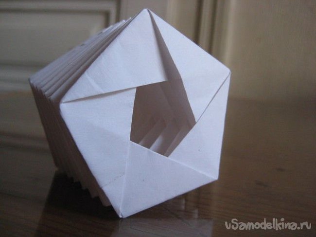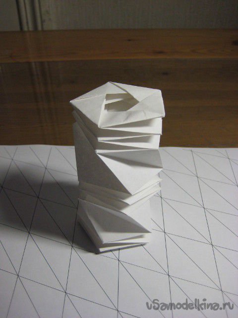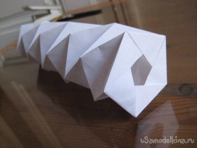 Нужно сворачивать «телескоп» с двух сторон одновременно и постепенно достигнете центра конструкции. После этого сворачивать и загибать бумагу нужно в противоположном направлении.