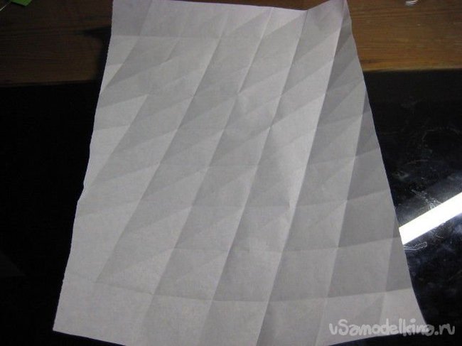 Чертеж получился простым, там повторяется один и тот же рисунок. Разница в том, как складывается бумага (зеркально) – вначале фигура выгибается, потом прогибается и наоборот, между структурой и рамой.