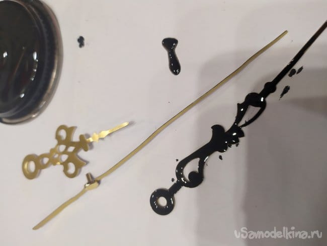 Мои стрелки имеют золотой цвет, а я хочу черный, поэтому я их тоже перекрашиваю эмалью Пф -115.