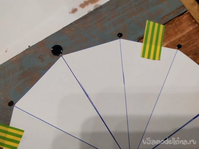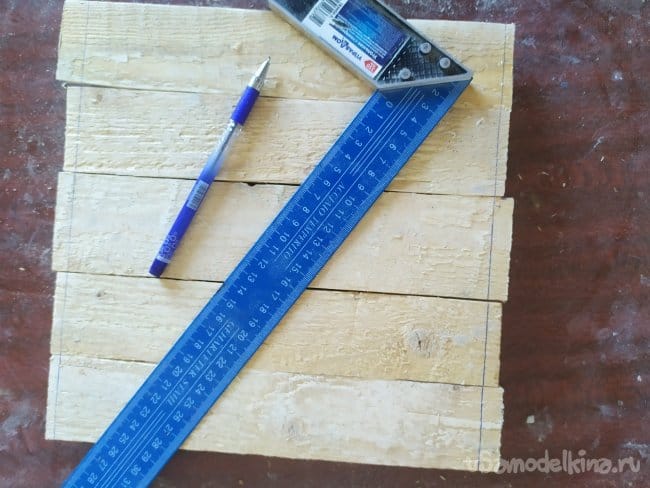 Теперь нужно будет их прикрепить. Для этого, ручкой нужно сделать отметки. Я делаю на глаз, перфекционисты не оценят). Так же, я отметила ручкой, где будут находиться рейки, чтоб в процессе, они не сползли.