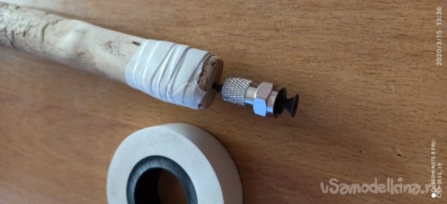 Торец палки стянем изолентой, что бы не расколоть кончик палки