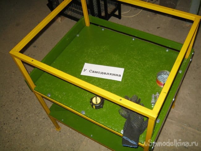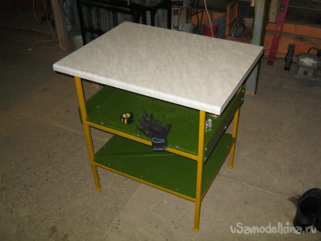 Материалы – стандартная квадратная труба 20х20 в потребном количестве, чуток полосы для площадок-опор ножек, кусок нетонкой фанеры или ДСП для полок.