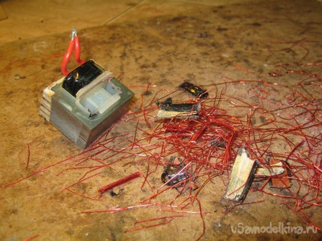 Удалив внешнюю изоляцию вторичной обмотки, выяснил направление намотки провода. Отметил его спиртовым фломастером на магнитопроводе трансформатора.