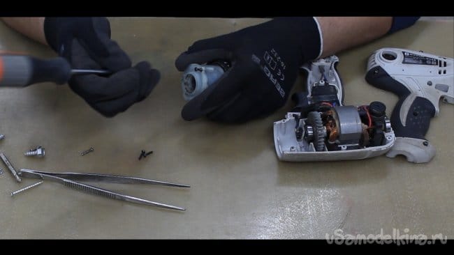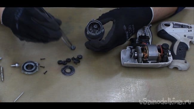 Когда все винтики стоят на своем месте, начинаем собирать редуктор и сам шуруповерт в обратной последовательности и приступаем к проверке.