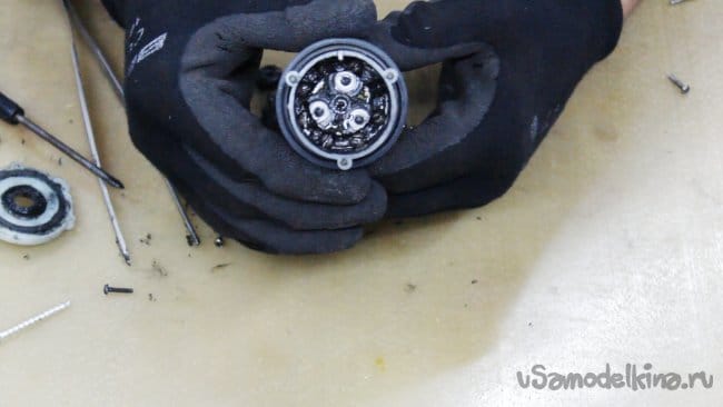 когда вскрыли корпус, то достаем сам редуктор и разбираем его тоже...
