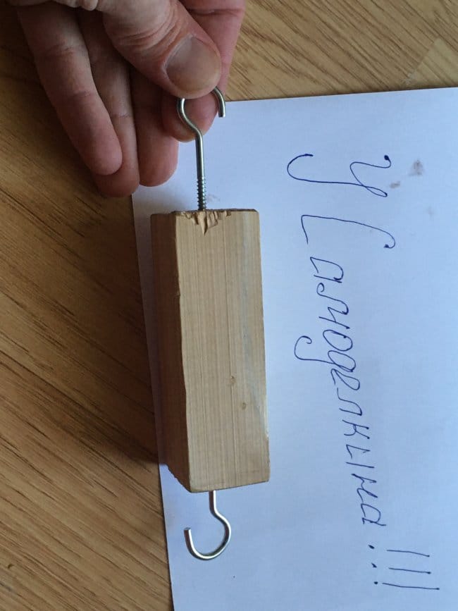 В торцы заготовки вкрутил по одному резьбовому крюку на всю длину. Ключница-подвеска готова. Одним крюком подвешиваю ее в нужном месте, а на второй навешиваю ключи.