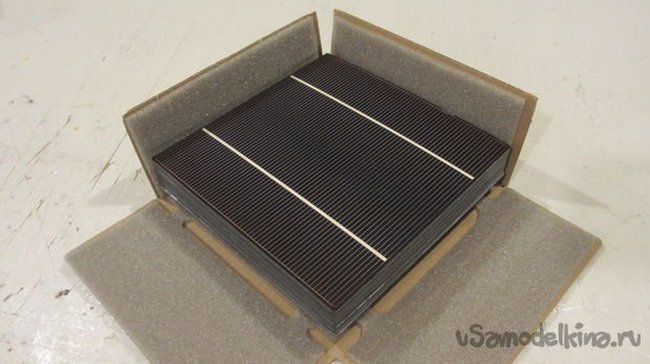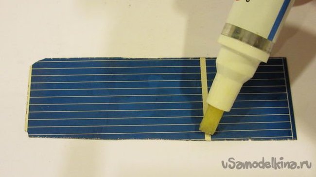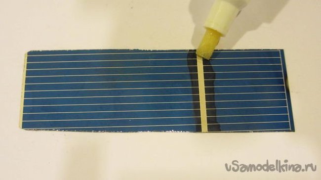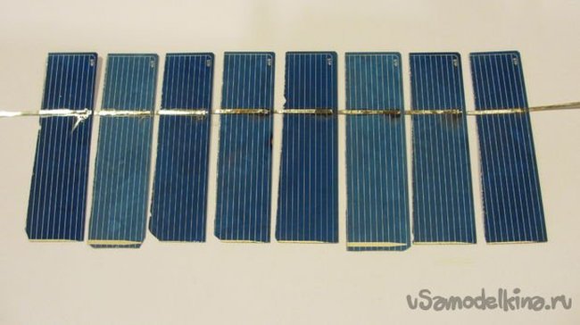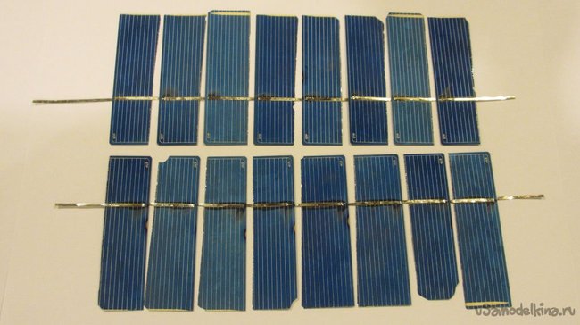 Я спаял две полоски по 8 фотоэлементов вместе, чтобы в итоге получить напряжение 8 вольт.