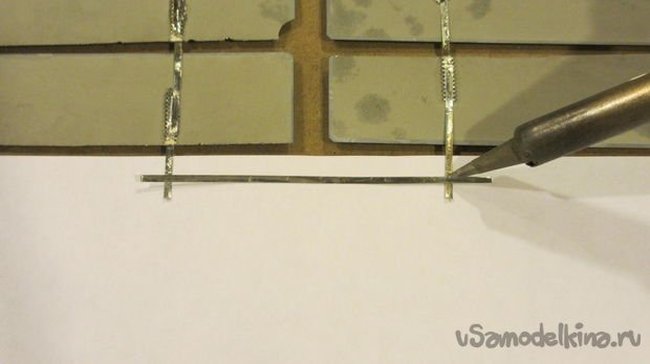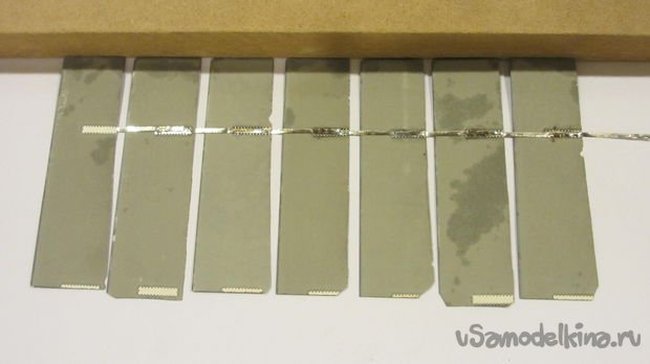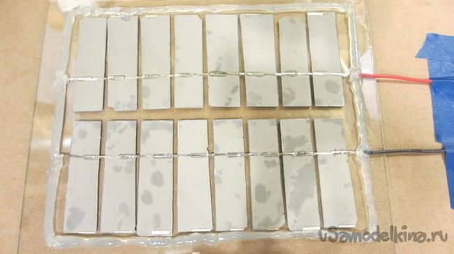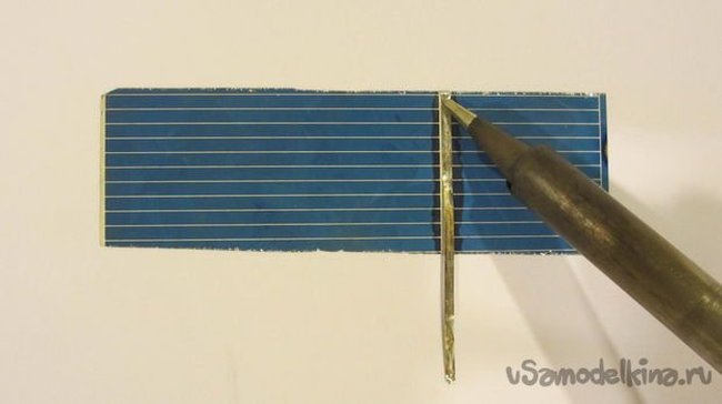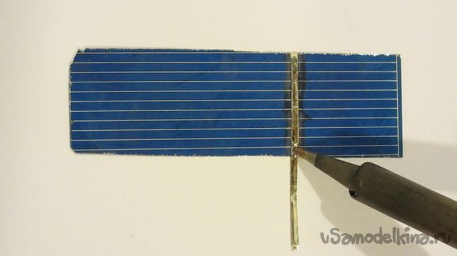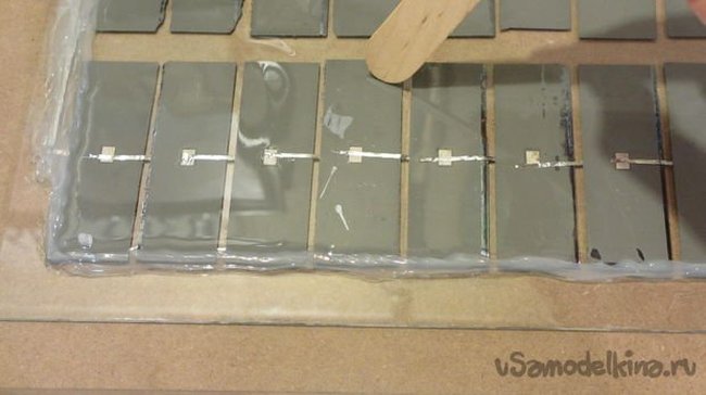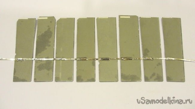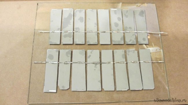 Для этого шага я спаиваю ряд из 8 фотоэлементов, чтобы увеличить напряжение панели. В итоге получается панель суммарным напряжением 8 вольт.