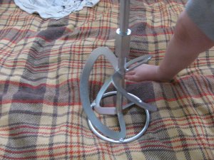 Осталось зачистить швы и отбалансировать. Балансировку я производил при помощи тяжёлого молотка и всё того-же отрезка рельса! )))). Установив насадку в миксер, и сбросив обороты до минимума, я наблюдал за вращением и просто подгибал ударами молотка сам венчик, убирая биение. Таким образом я добился очень хороших результатов - миксер не болтает, даже если его включить на весу, удерживая в одной вытянутой руке.