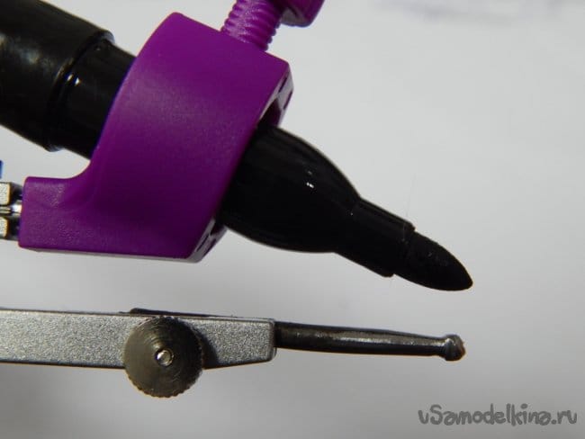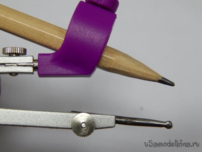 Сменяемая насадка циркуля позволяет закрепить в ней и карандаш