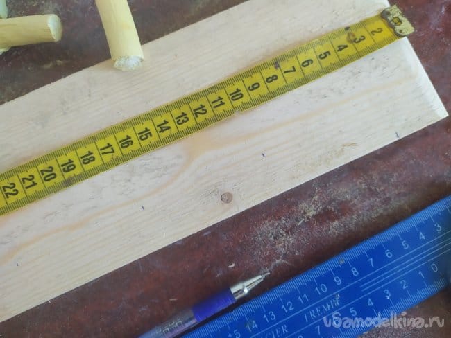 Когда "крючки" очищены, можно заняться основанием вешалки, доской. Я заранее вырезала себе досточку, размером 450 на 100мм.
