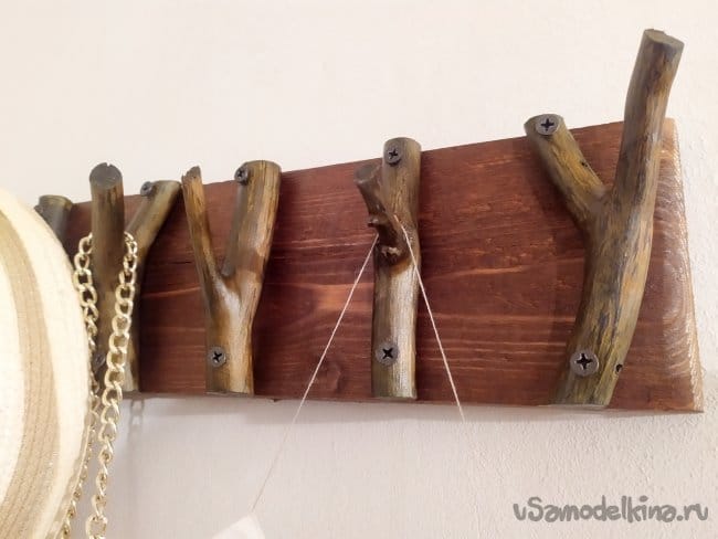 Когда лак полностью высохнет, можно подвести итог проделанной работе, и повесить вешалку на стену. Меня полностью удовлетворил результат, все материалы очень доступные, а ручная работа сейчас очень ценится. Надеюсь, эта вешалка будет еще долго радовать глаз.