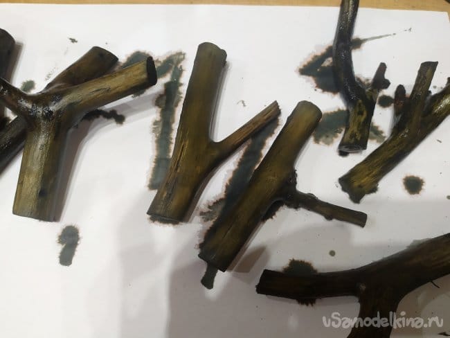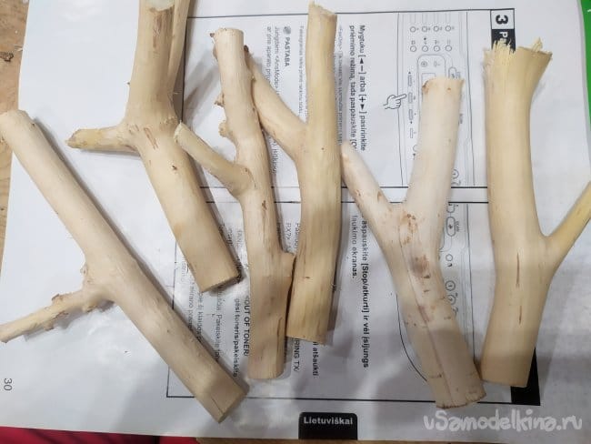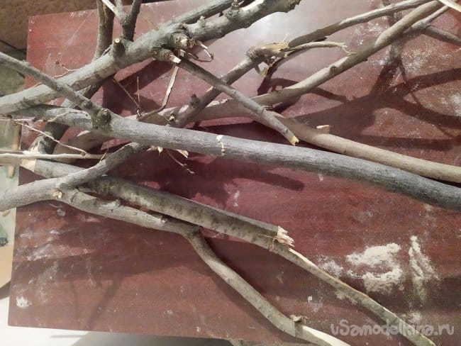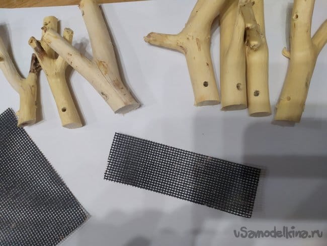 Так как на ветках остались следы лобзика и дрели, я руками их еще раз пошкурю.