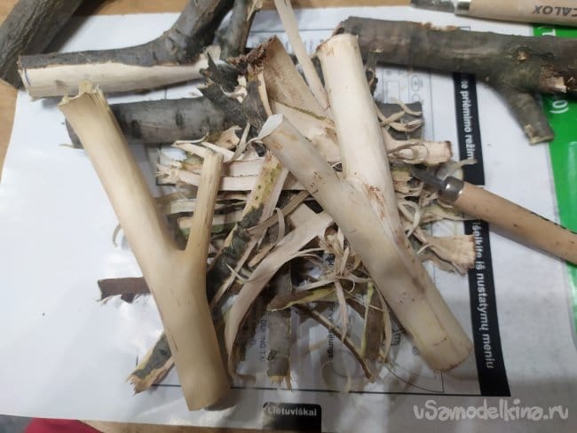 Теперь можно взять наши заготовки, и очистить их от коры.