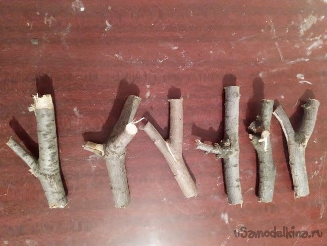 Первым делом, нужно найти нужные ветки. Мне повезло, рядом посадка, поэтому, такого добра там хватает. Я нашла спиленное сухое дерево, и нарвала себе веток. Размер веток может быть разным, в зависимости от того, для каких целей нужна вешалка. Если для верхней одежды, то ветки понадобятся потолще. Я же буду использовать такие ветки, которые смогла отломать руками, так как отпилять было нечем.