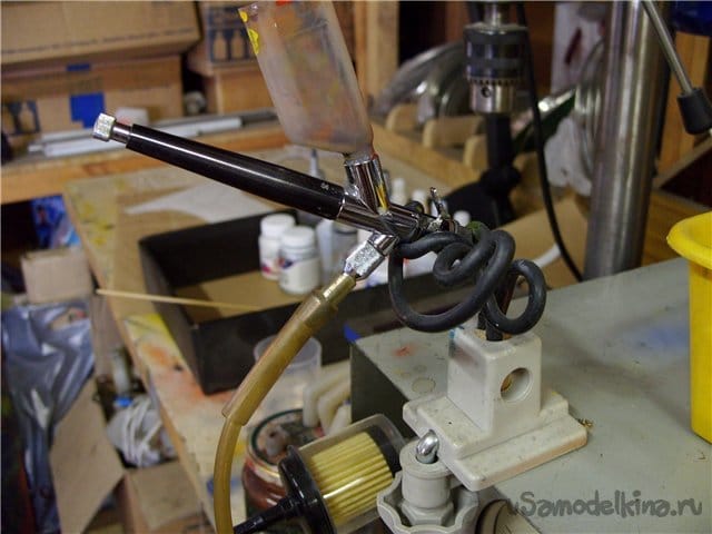 На шланг от компрессора обязательно надеваю автомобильный фильтр. Очищаю воздух идущий в аэрограф.