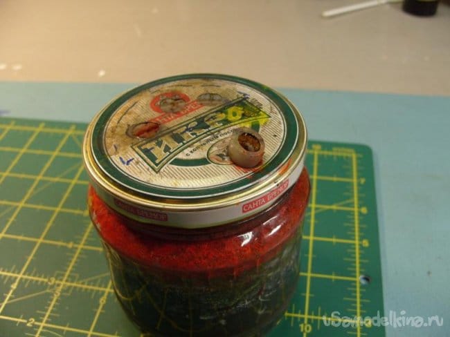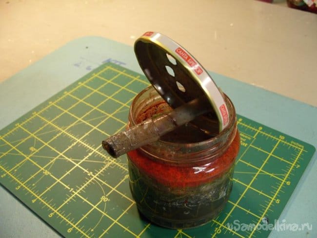 Наливаю в банку воду, которая малость закрывает трубку от аэрографа.