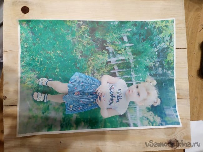 Важный момент - в итоге, фотография будет иметь перевернутый вид, точнее - как отражение в зеркале. Поэтому, этот момент нужно учесть, при выборе фото, либо перевернуть перед распечаткой. По бокам присутствует белая рамочка. Её нужно обрезать.