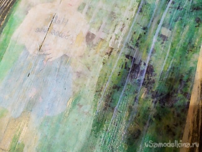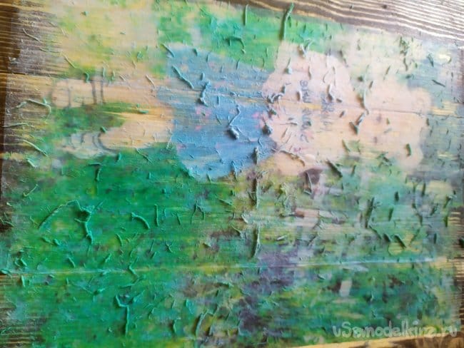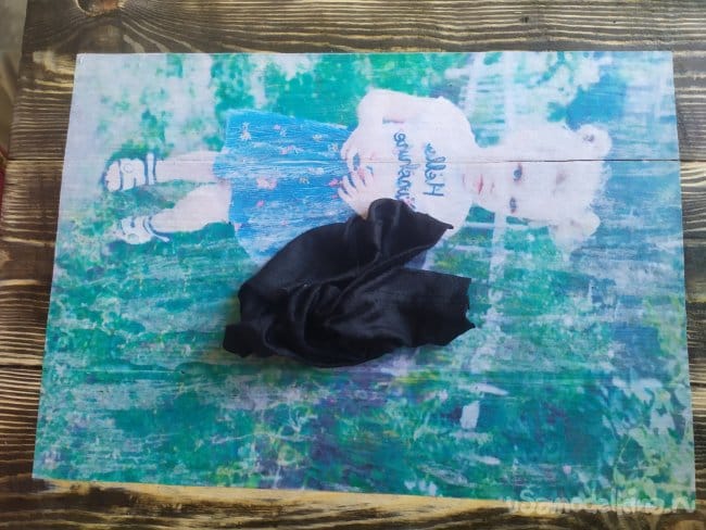 Когда время пришло, можно приступать к следующему этапу. Нам понадобится вода и тряпка. Нужно намочить всю картинку водой.