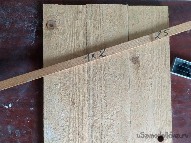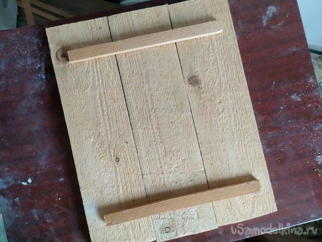 Отрезаем две рейки длиной 250мм. Размещаем их с задней части основания.