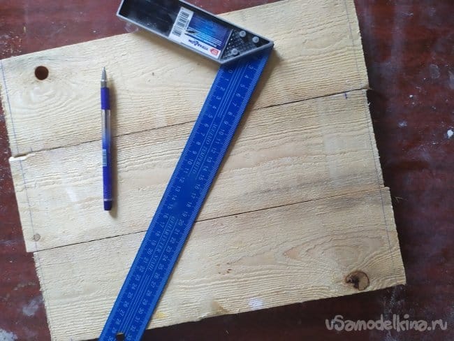 Теперь, нужно ручкой или карандашом отметить ее границы. Чтобы нарисовать ровно, можно приложить угольник.