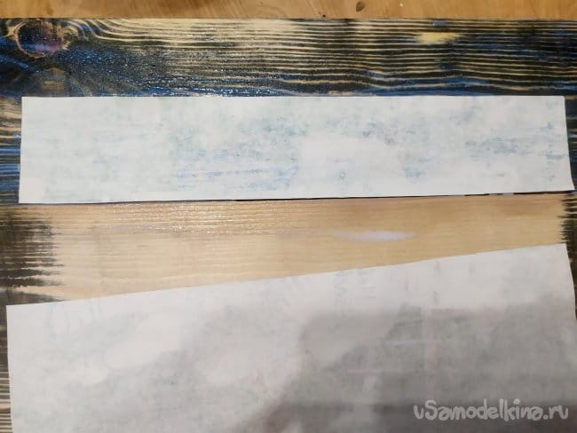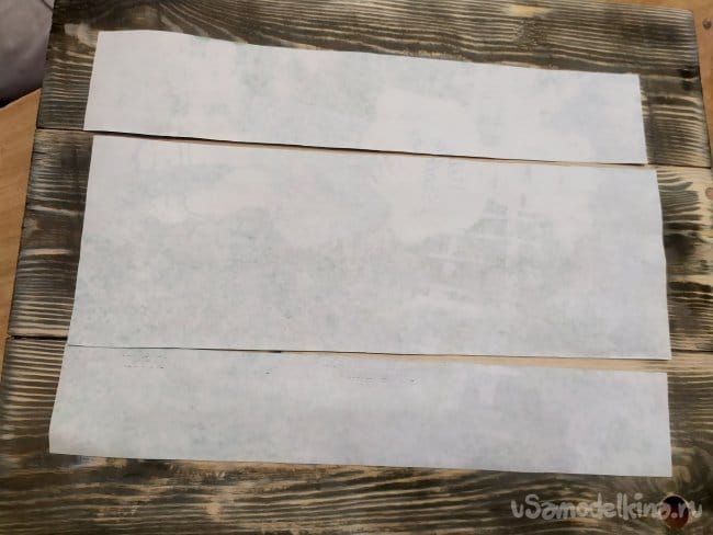 Когда рамка готова, можно заняться переводом фото на дерево. Так как мое основание состоит из трёх досок, то и изображение я разрежу на три части. Чтоб не пачкать ручкой картинку, я просто прикладываю его, и заминаю в тех местах, где нужно разрезать.