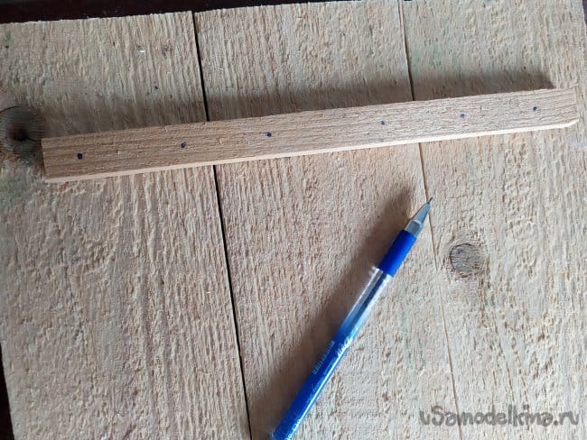 Теперь дрелью нужно будет сделать отверстия под саморезы. Рейки очень сухие, поэтому, без предварительных отверстий они просто расколятся.