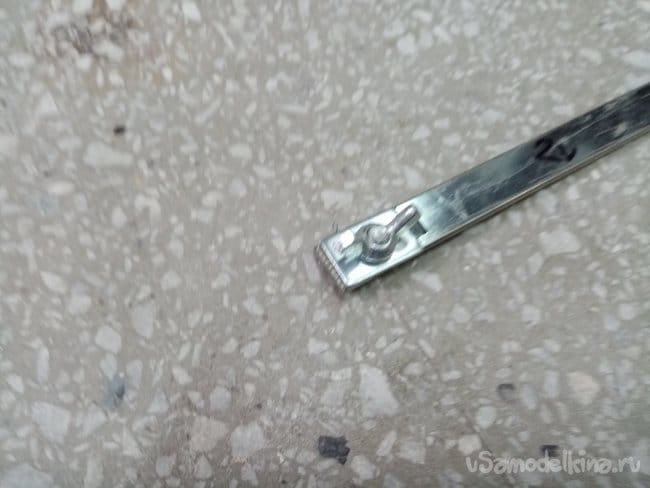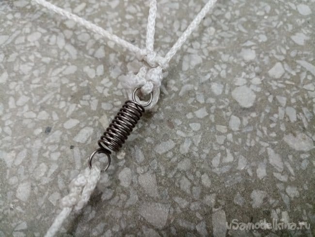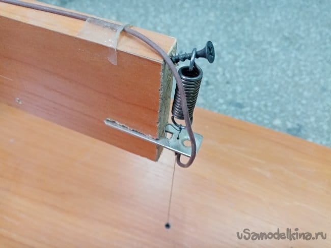 На верхней дуге установлена сильная пружина, для компенсации удлинения струны при нагреве и планка с дополнительной фиксацией уже вверху.