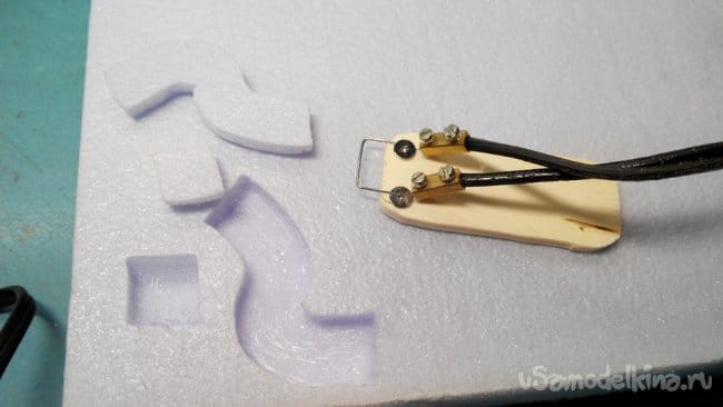 Срочные резалки "по месту", изготавливаю из обрезков фанеры, изогнутой нихромовой проволоки и электромонтажных зажимов.