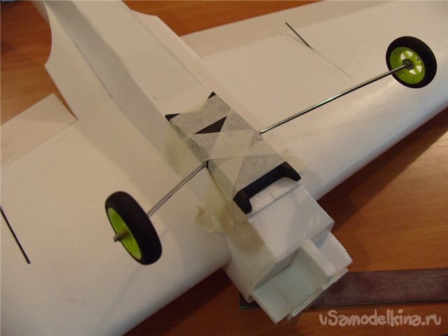 Затем из 3мм фанеры выпиливаю площадку крепления к фюзеляжу.