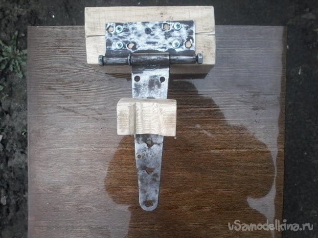 Шаг-4. Петлю прикручиваем наверх большого бруска саморезами.