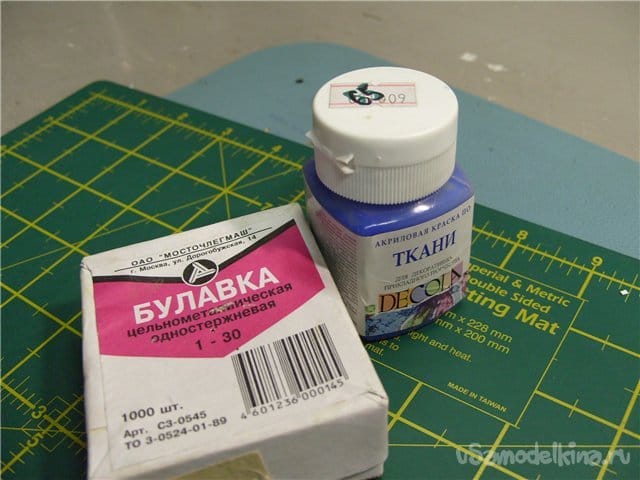 Закрепляю трафареты иголками, предварительно натянув майку на кусок пенопласта толщиной 20мм.