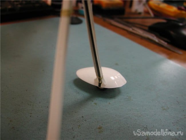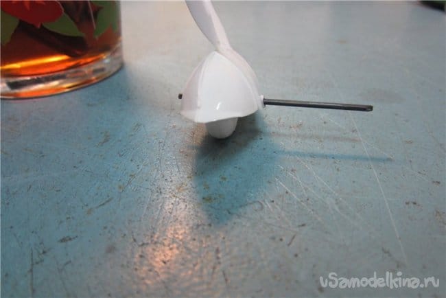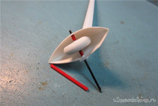 В обтекатель монтирую на карбоновом прутике 2мм. Центрирую трубочками.